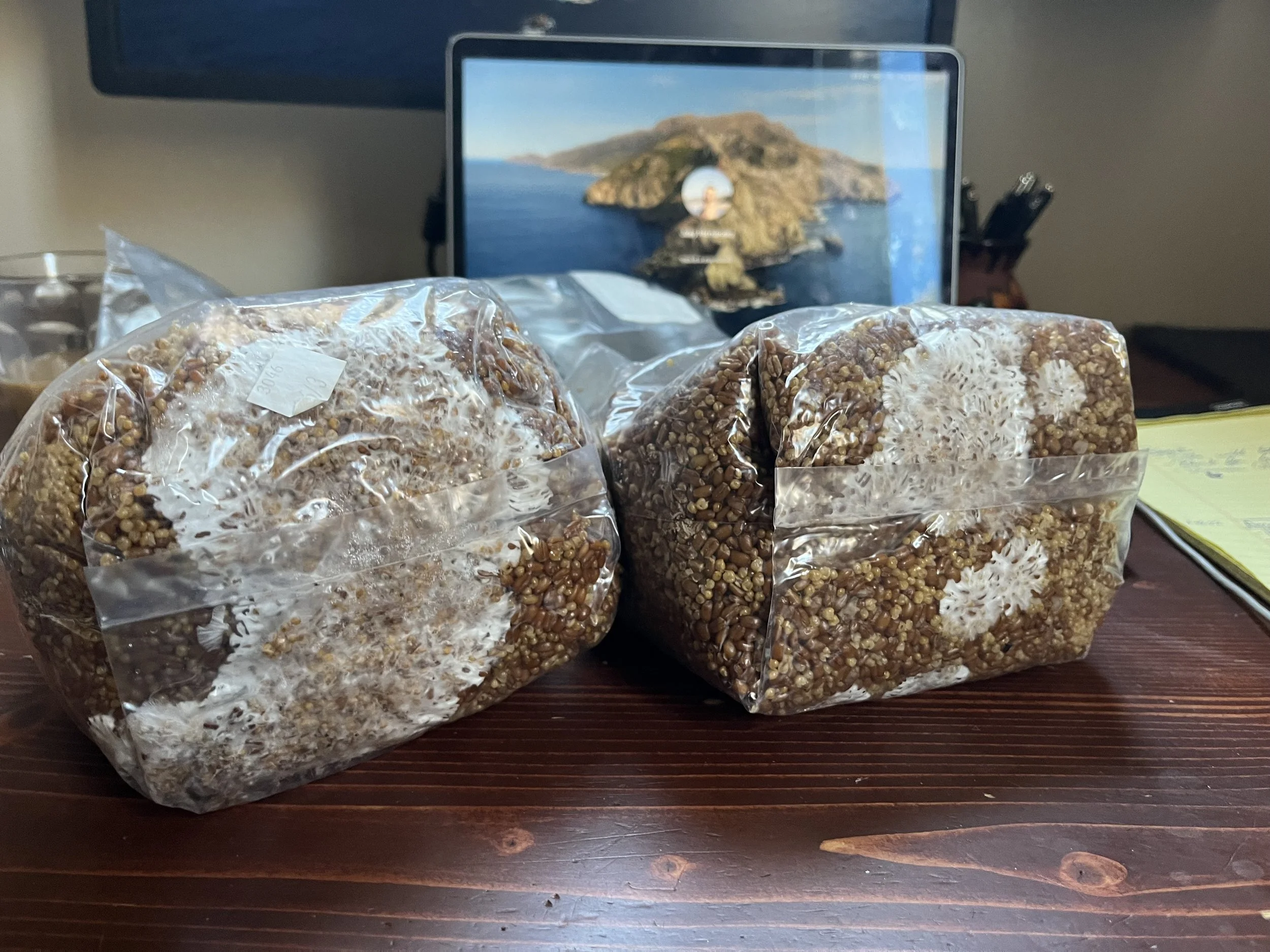 So when I added the substrate, I could have waited for the grain to be completely consumed by mycelium. I did it too early and this process is definitely teaching me patience. I had the option of manure or wood substrate, so I did manure. Also from northspore.com.