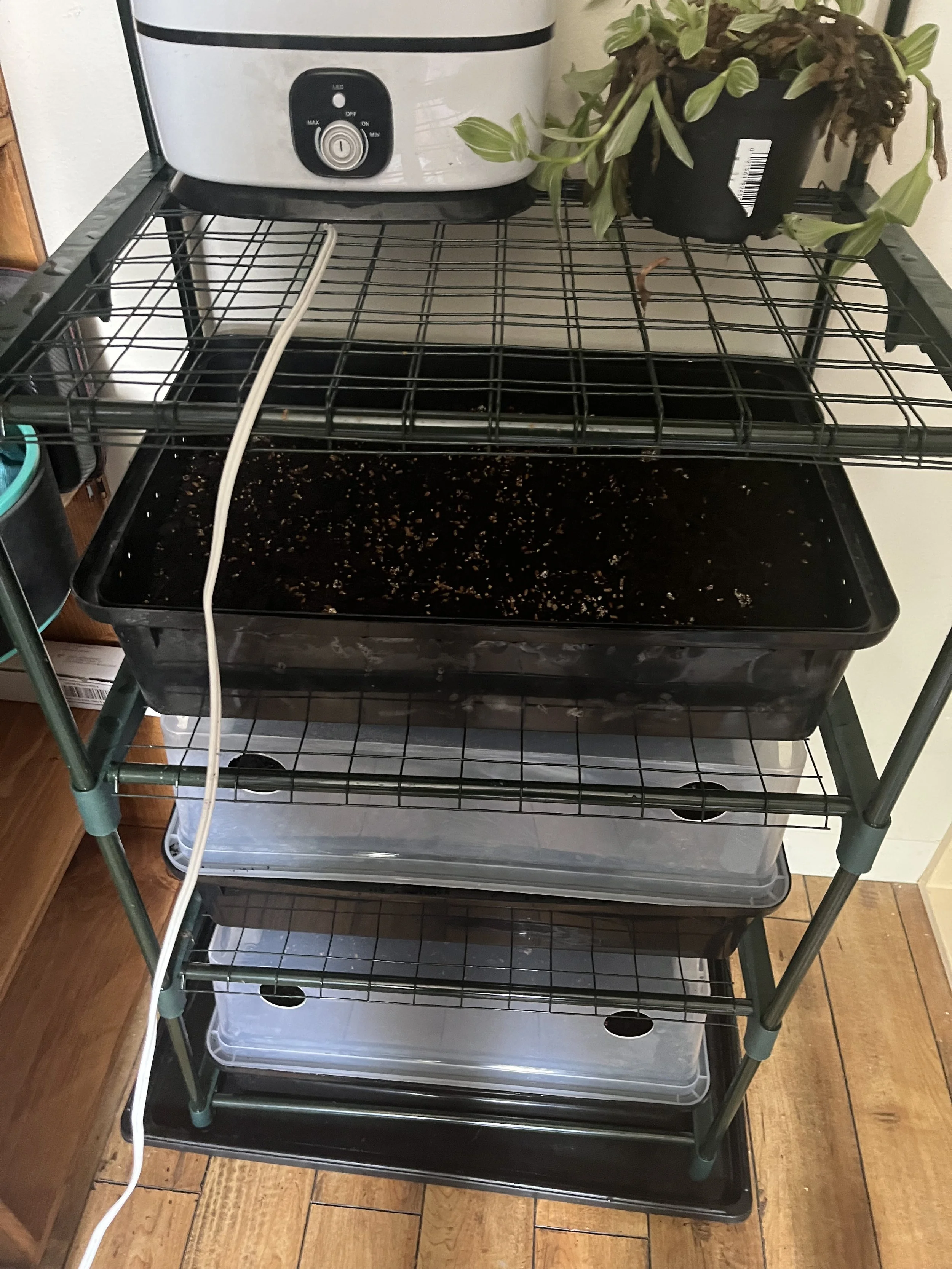 So basically mycelium/mushrooms do really well in 55-70 degrees Fahrenheit. They do well in dark, moist places. So a Martha Tent or mini green house with a humidifier worked really well for me. Both for plants and mushrooms.