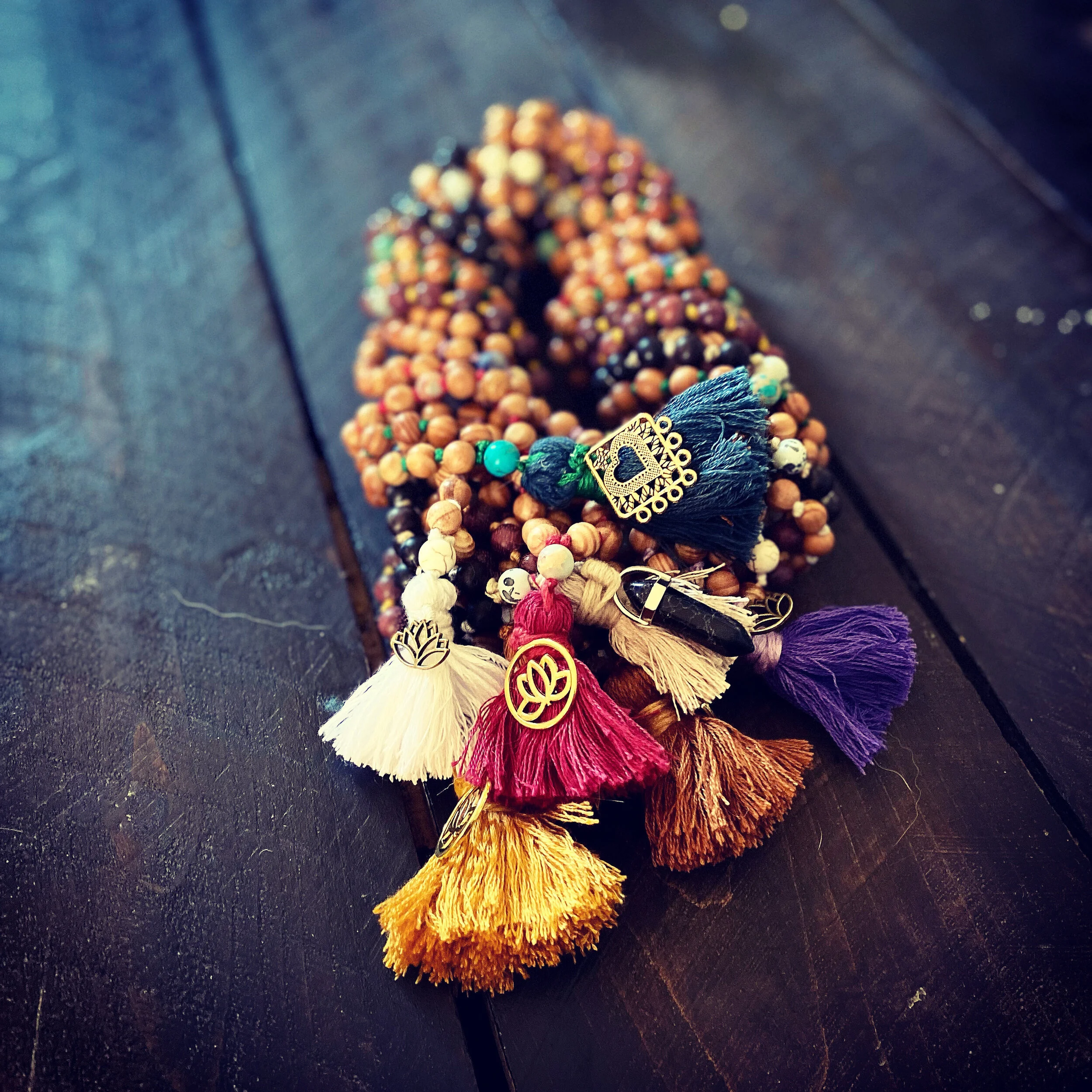 Malas, a garland of 108 meditation beads, are used as a tool to help the mind focused on meditation and/or count mantras by using the beads to keep track.